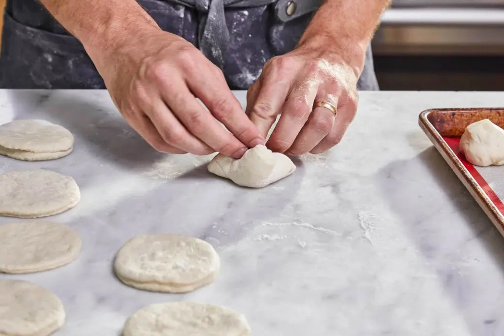This recipe is designed to be easy — and you can sub in store-bought dough to make it even simpler — but there is one tasty complication: cheese leakage. Some might argue this is actually the best part, but it’s easy enough to avoid if you must: Just be sure to fold your dough balls carefully. We do this by pinching together a few seams and making four folds of dough over the cheese before rolling each piece into a ball. If the cheese still finds its way out of the dough pocket, don’t worry: Just christen it as a “snowy” Christmas tree and enjoy the caramelised edges!