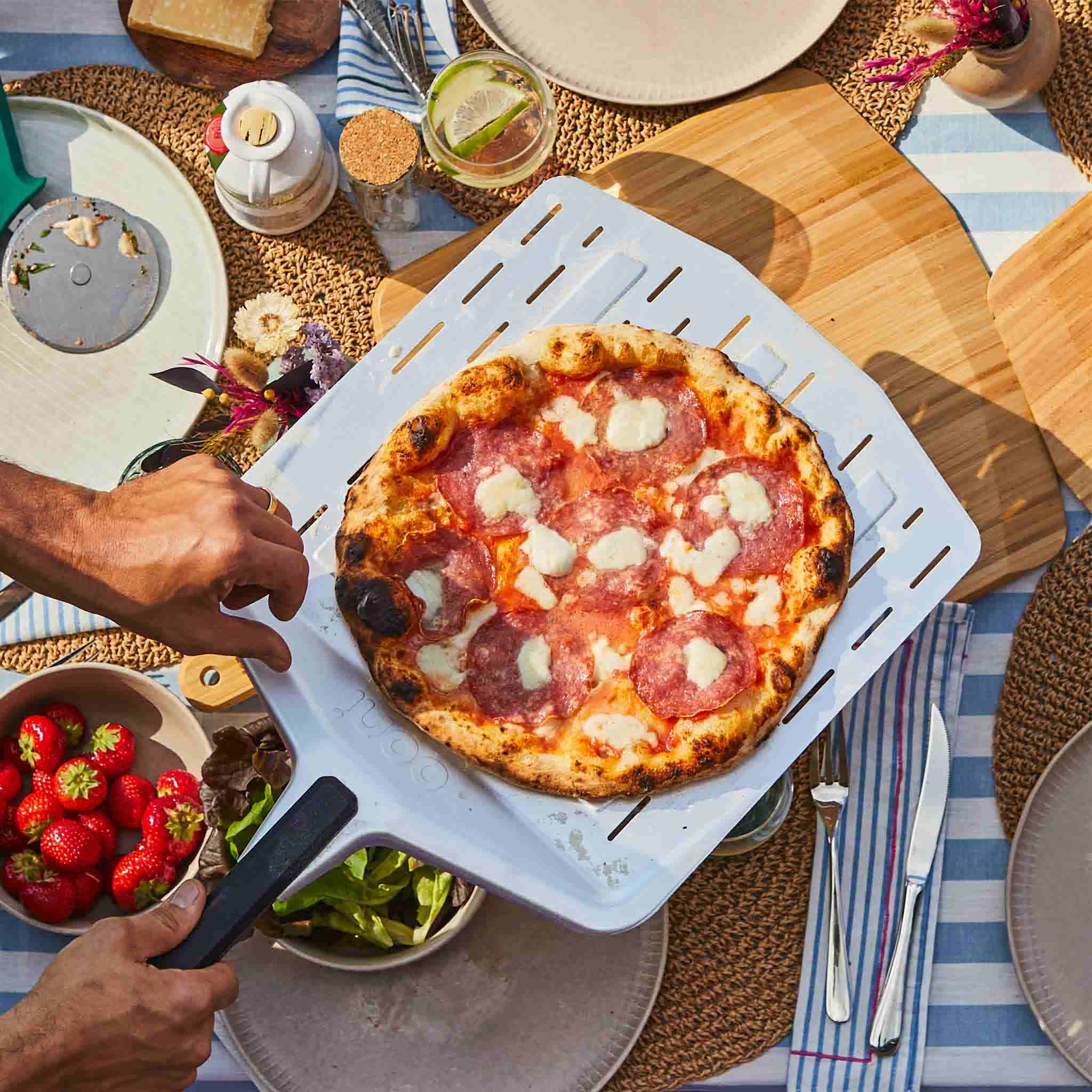 Aside from a great Ooni pizza oven, every pizza maker needs a few key tools: One or two lightweight pizza peels to slide pizzas in and out of their oven; an infrared thermometer to tell precisely when it’s ready to cook; an oven brush to keep the stone free of debris; and the right surface to place the oven on (we recommend our stainless steel Modular Tables). With those essentials and a love for pizza, the sky is the limit!
