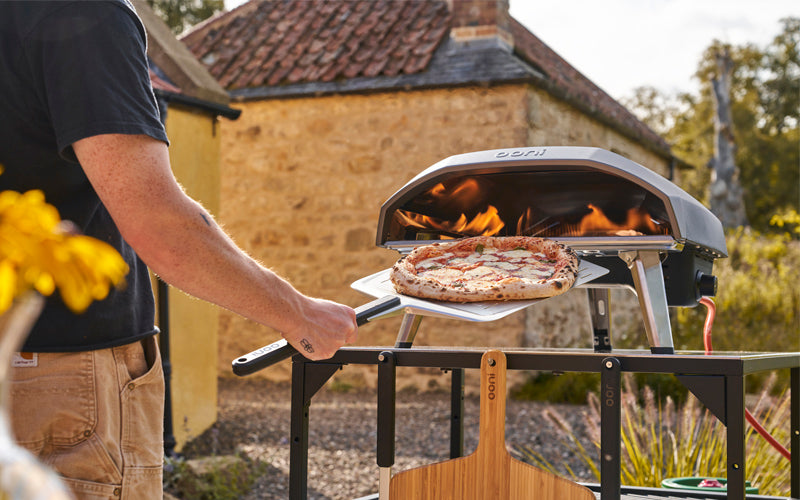 It's time to slide your pizza off the peel and into the oven. This can be a tricky part of the cook. After making sure your base hasn’t stuck, aim to slide the pizza into the middle of the baking stone.