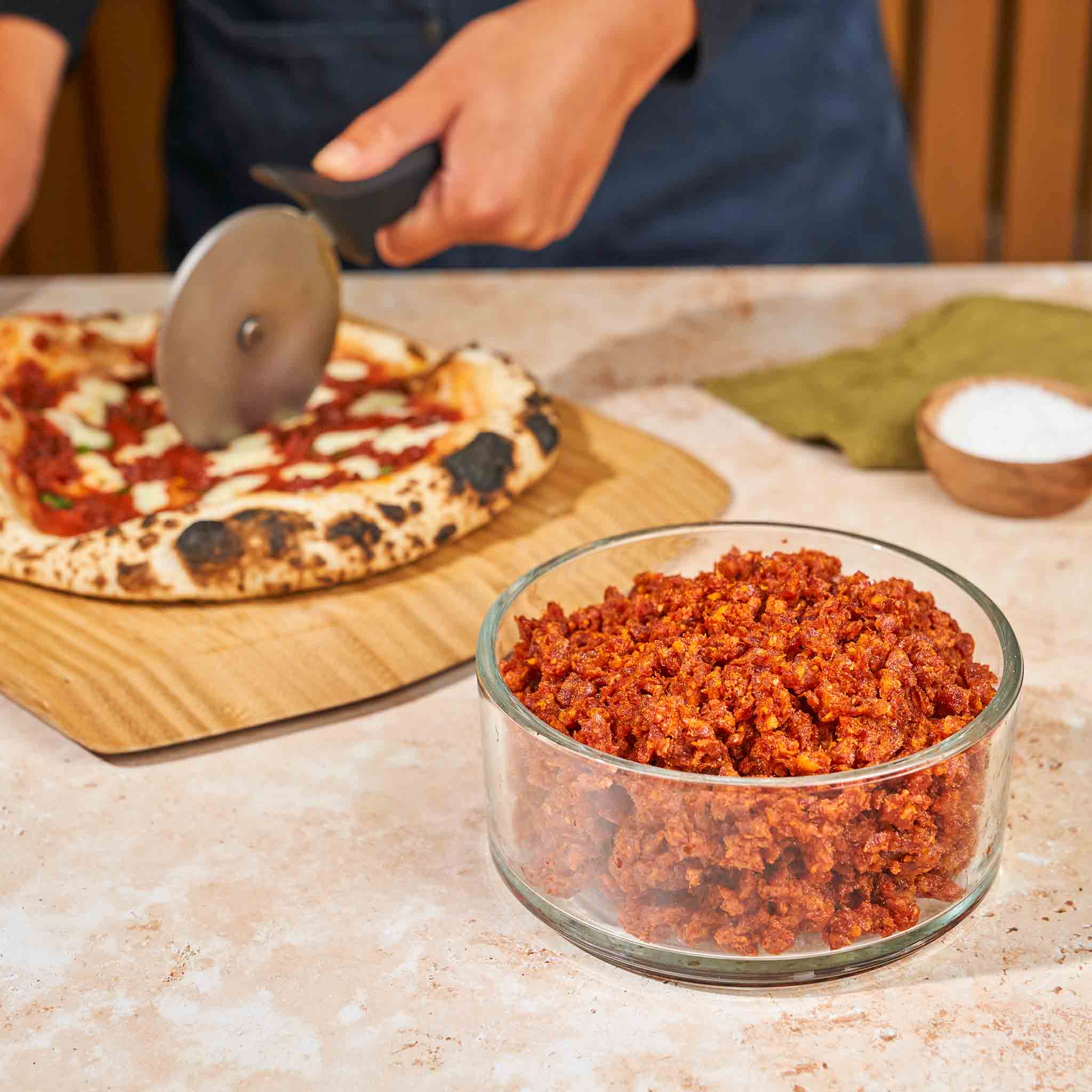 This crumbled, mince-like version of our best-selling standard-sized Properoni gives you flexibility as it can go from making “Meat Feast'' pizzas to adding a delicious kick to pasta sauces. Plus, you can portion up, freeze the bag, and take out what you need, when you need it.